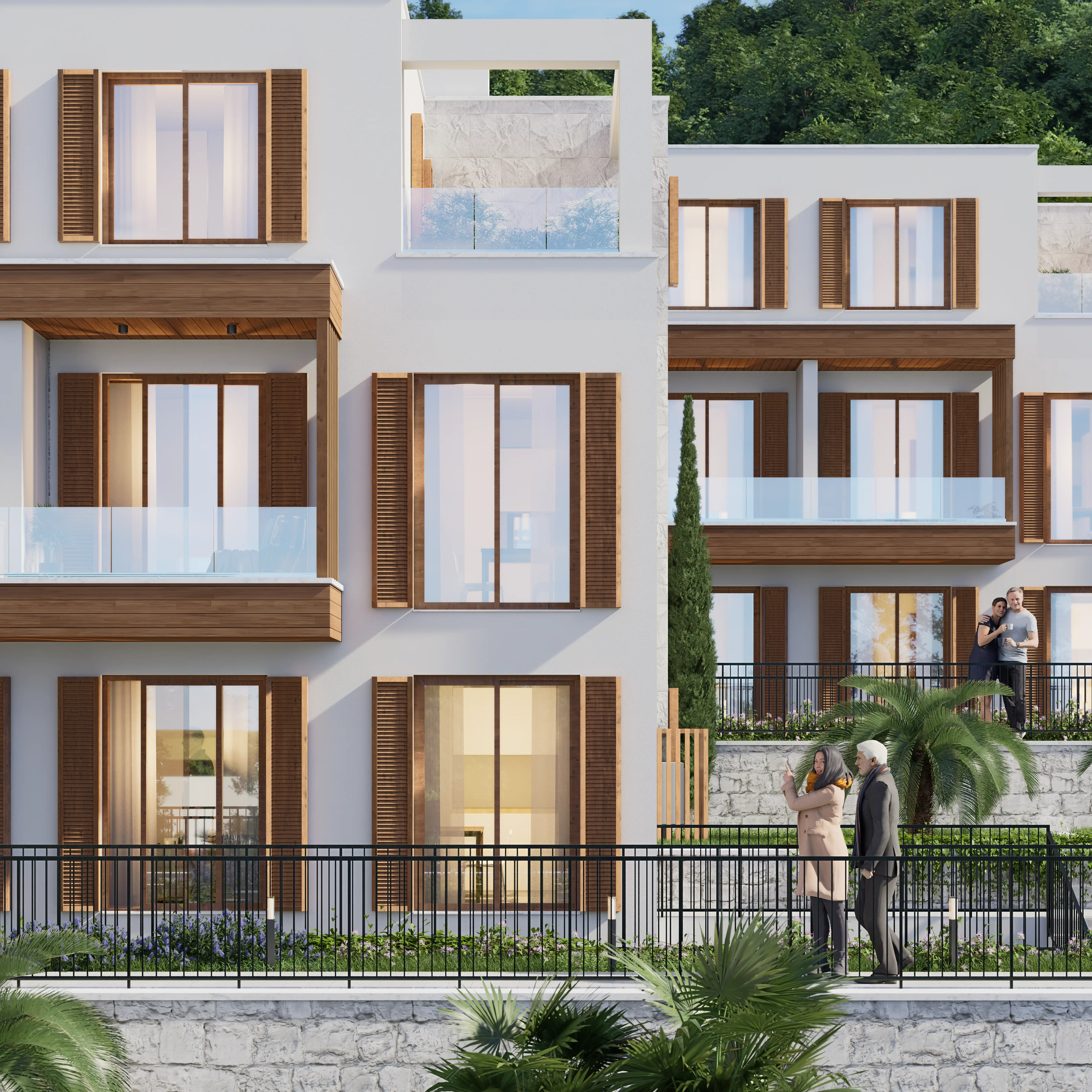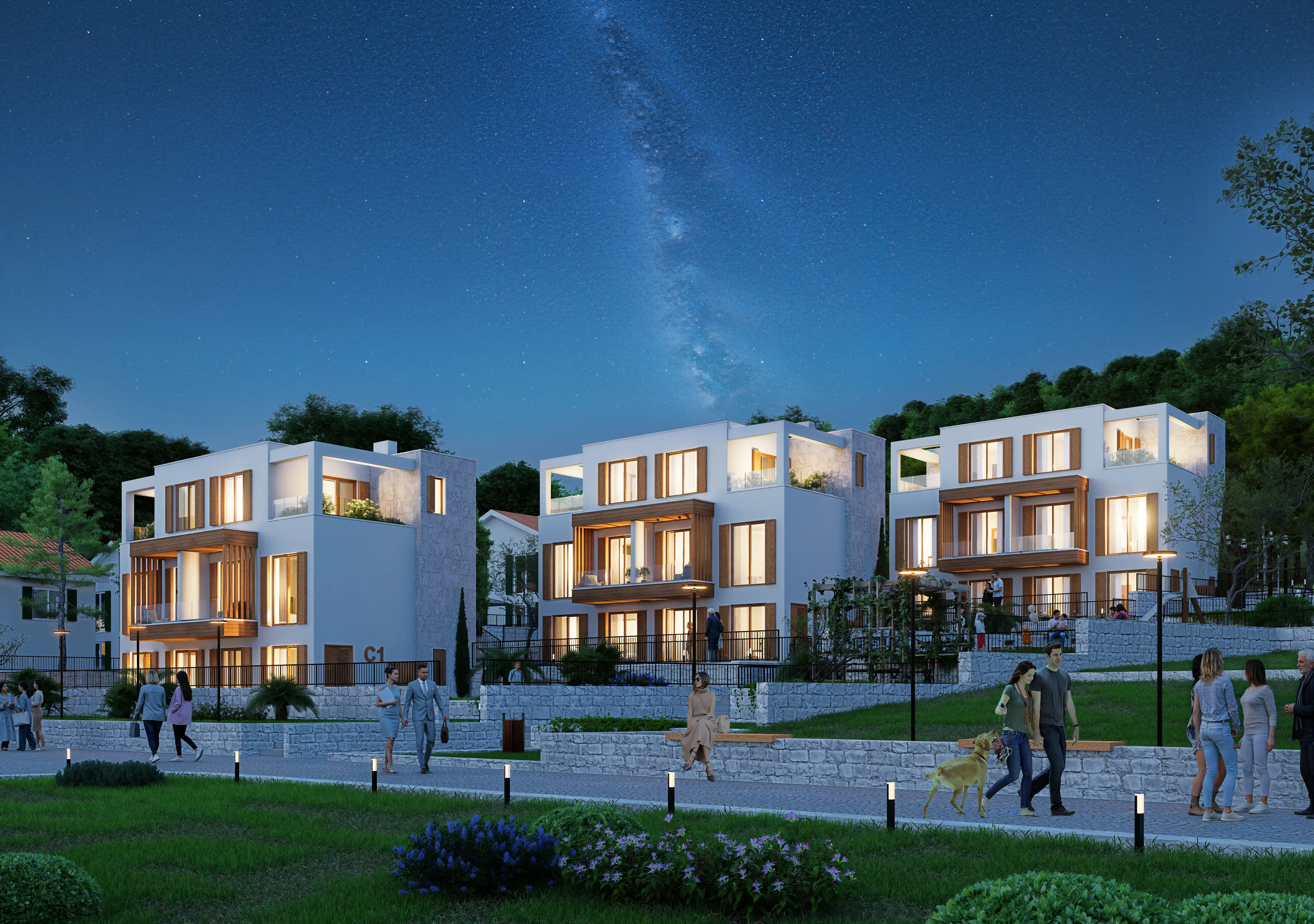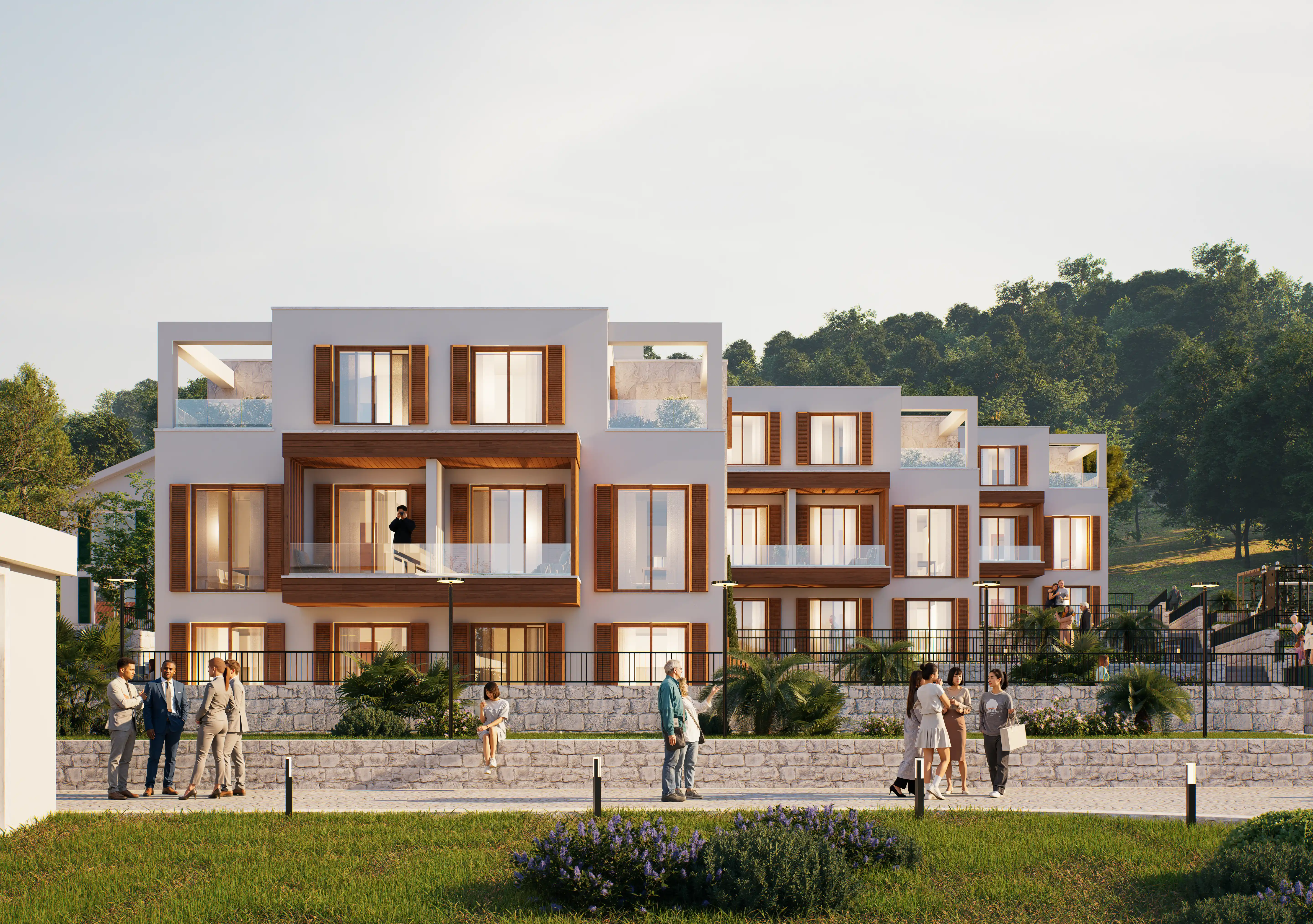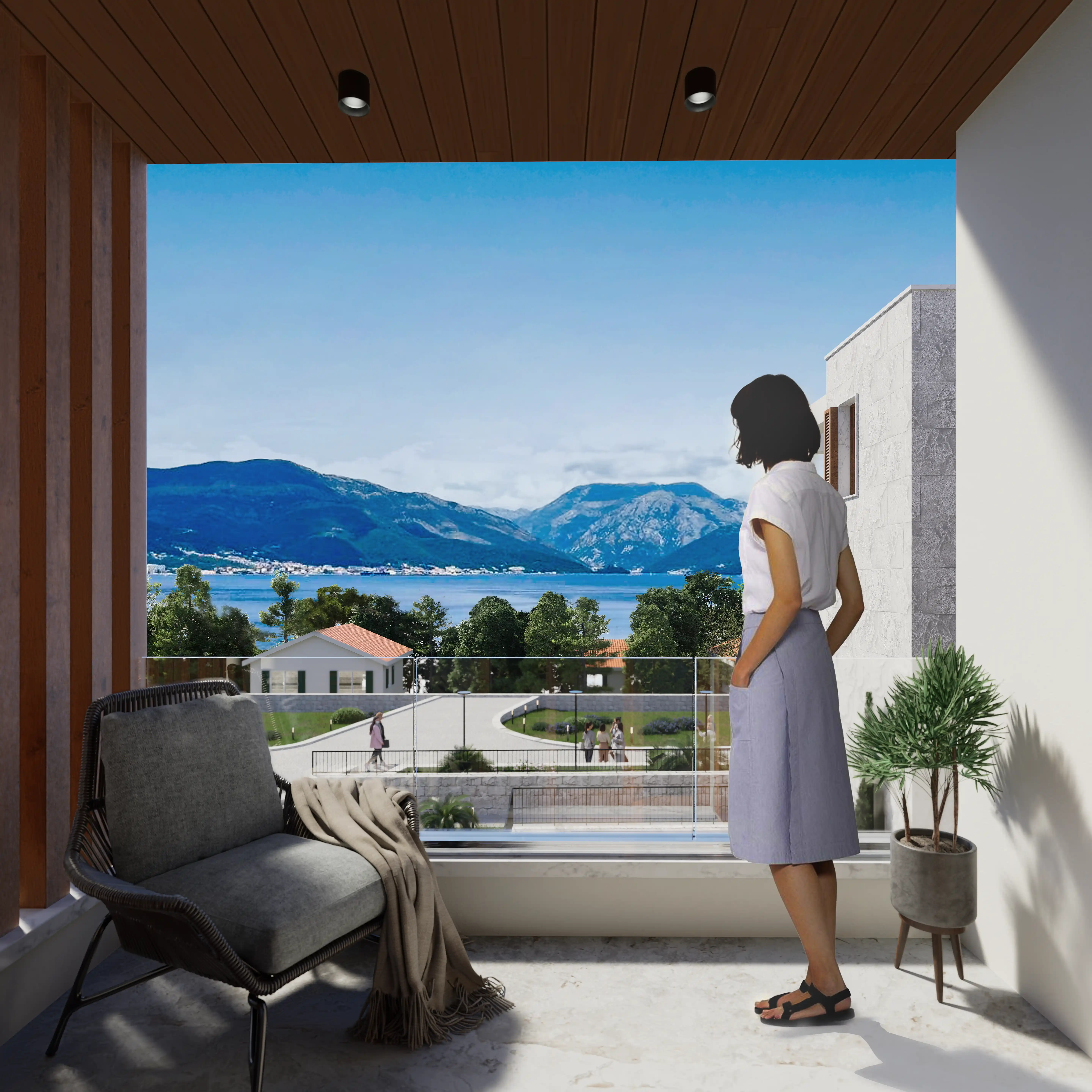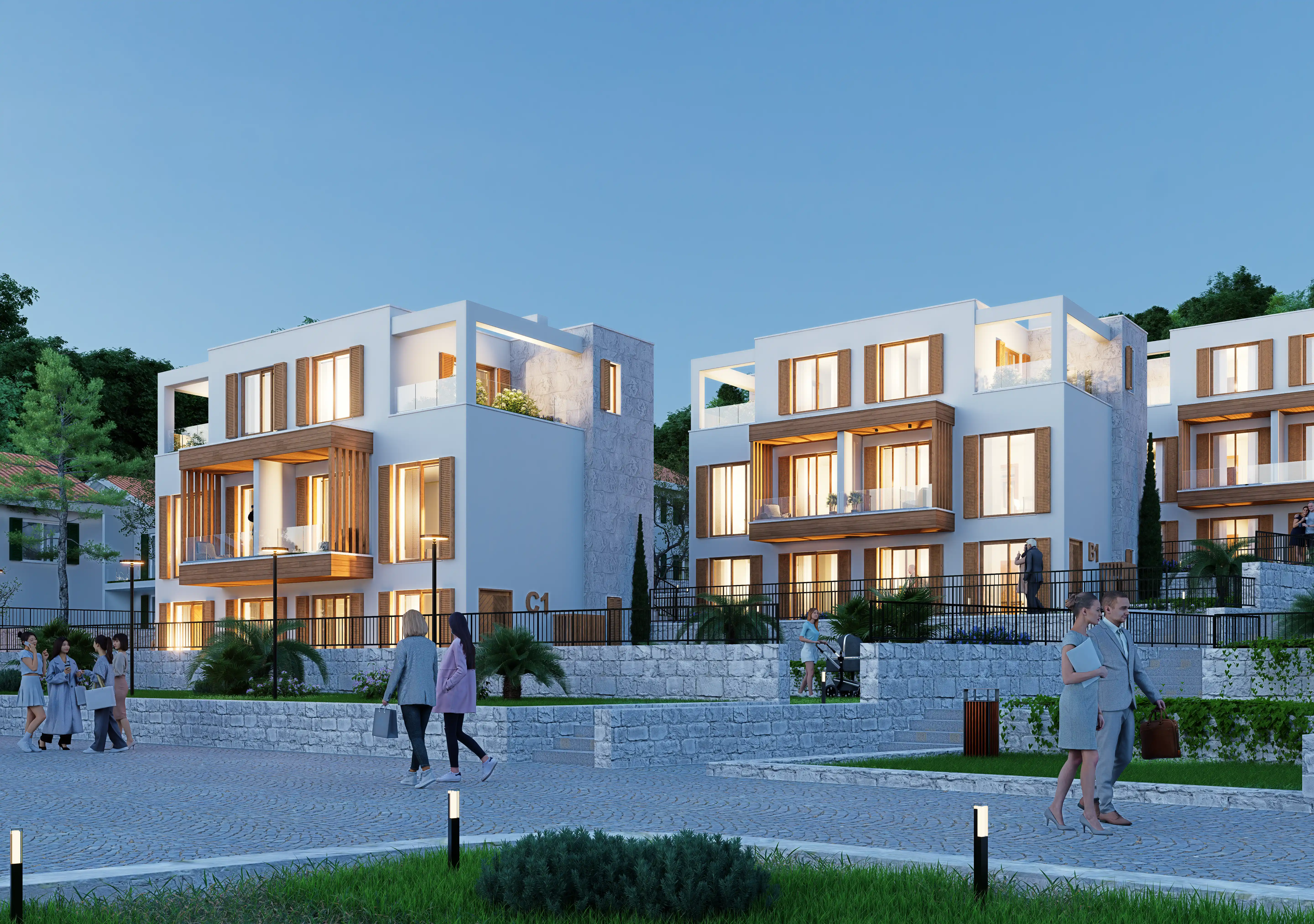 Luštica Yarımadasında denizle bütünleşen Krašići, doğal eğim boyunca uzanan evleri, bahçeleri ve patikalarıyla Akdeniz’in dingin yaşam ritmini yansıtır; Monte Blue, Krašići’nin huzurlu yamaçlarında, denize sadece 20 metre uzaklıkta yer alan samimi bir kıyı konut kompleksidir. Modern konforu Akdeniz karakteriyle harmanlayarak; mahremiyet, doğal ışık ve yavaş bir yaşam ritmini önemseyenler için rafine bir sahil yaşamı sunar. Denize 20 metre uzaklıktaki üç alçak katlı binası, ufukla şekillenen, ışıkla rehberlik eden, mekanla özdeşleşen mimarisi, düz çatılar, güneşle yıkanmış taş, beyaz sıva ve sıcak meşe tonlu ahşaptan oluşan malzeme paletiyle modern konforu geleneksel Akdeniz karakteriyle harmanlayarak sadece dört özel konut birimi olarak sunar; dalga sesleri her an 20 metrede çınlarken kullanılan ahşap kepenkler hem gölgeleme hem de mahremiyet sağlar;